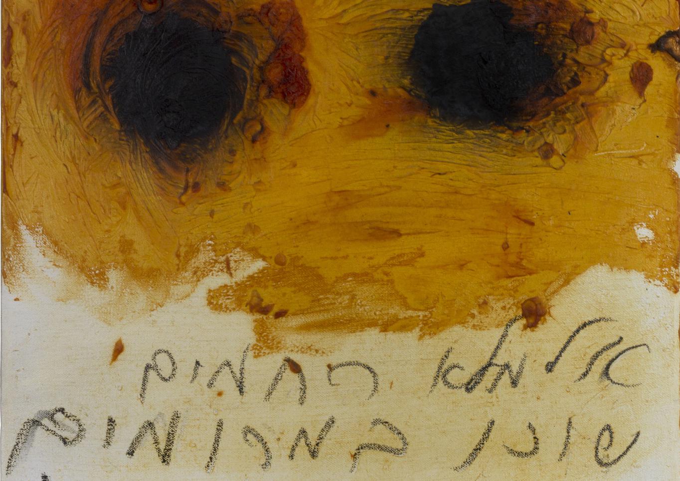 Image: Moshe Gershuni, Lord of Mercy, Dwelling in Heaven, Find Proper Rest (detail), 1995, oil on canvas, 60.5×60.5 cm, gift of the artist upon winning the Mendel and Eva Pundik Foundation Prize for Israeli Art, 1995