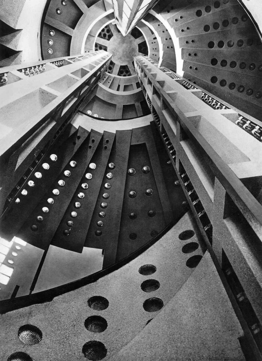 Haus Atlantis (2016) examines the history of a strange Expressionist building designed in 1931 also by Hoetger, together with the businessman and art patron Ludwig Roselius, with the intention to “restore the self-esteem of the German people.” The design of the building, which was to serve as a cultural institution housing Roselius’s collection of prehistoric artifacts, combined Nordic mythology, pseudo-science futuristic architecture in an embodiment of racial supremacy. Russo’s film shows the magnificent interiors, including its blue glass ceiling and spiraling staircase, along with archival materials and images of the building in its current state, now functioning as a hotel. The work presents the building’s history as an archaeological science-fiction narrative, and expresses fundamental doubt regarding ideologies, utopian visions and beliefs.