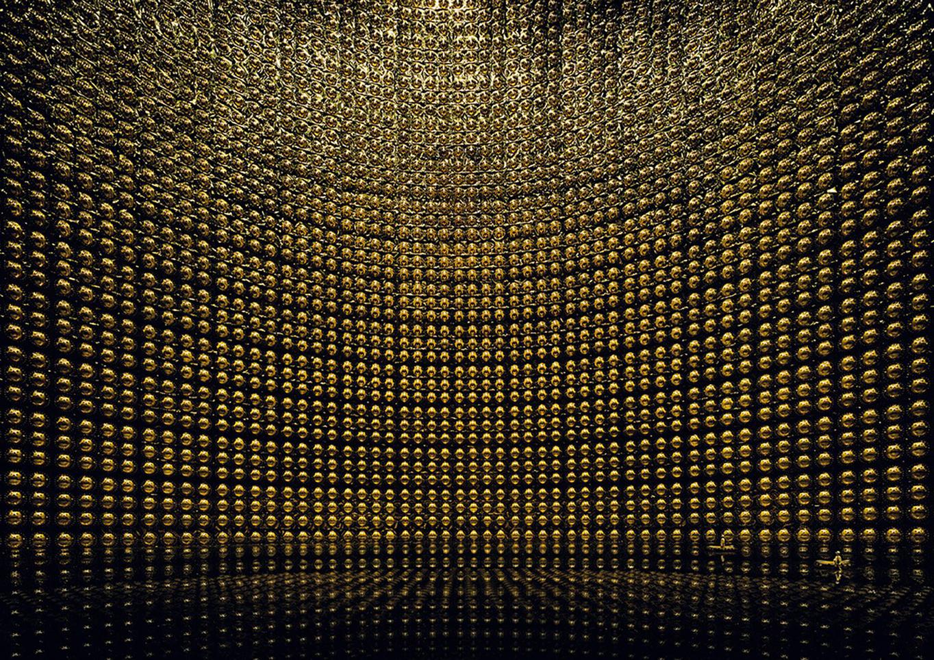 The adjoining room offers a respite: Andreas Gursky's photograph features a monumental cylindrical space, covered with gilded orbs. It was shot in Japan at a site for detection and observation of subatomic particles. The photograph evokes a sense of awe—a human-made sublime, a physical embodiment of the acme of rationalism and science. Hanging next to it is Edmund de Waal's cell, a tiny temple of sorts, containing objects made of ultra-thin porcelain and a gold panel, perhaps a glimmer of hope for the fragile human spirit.