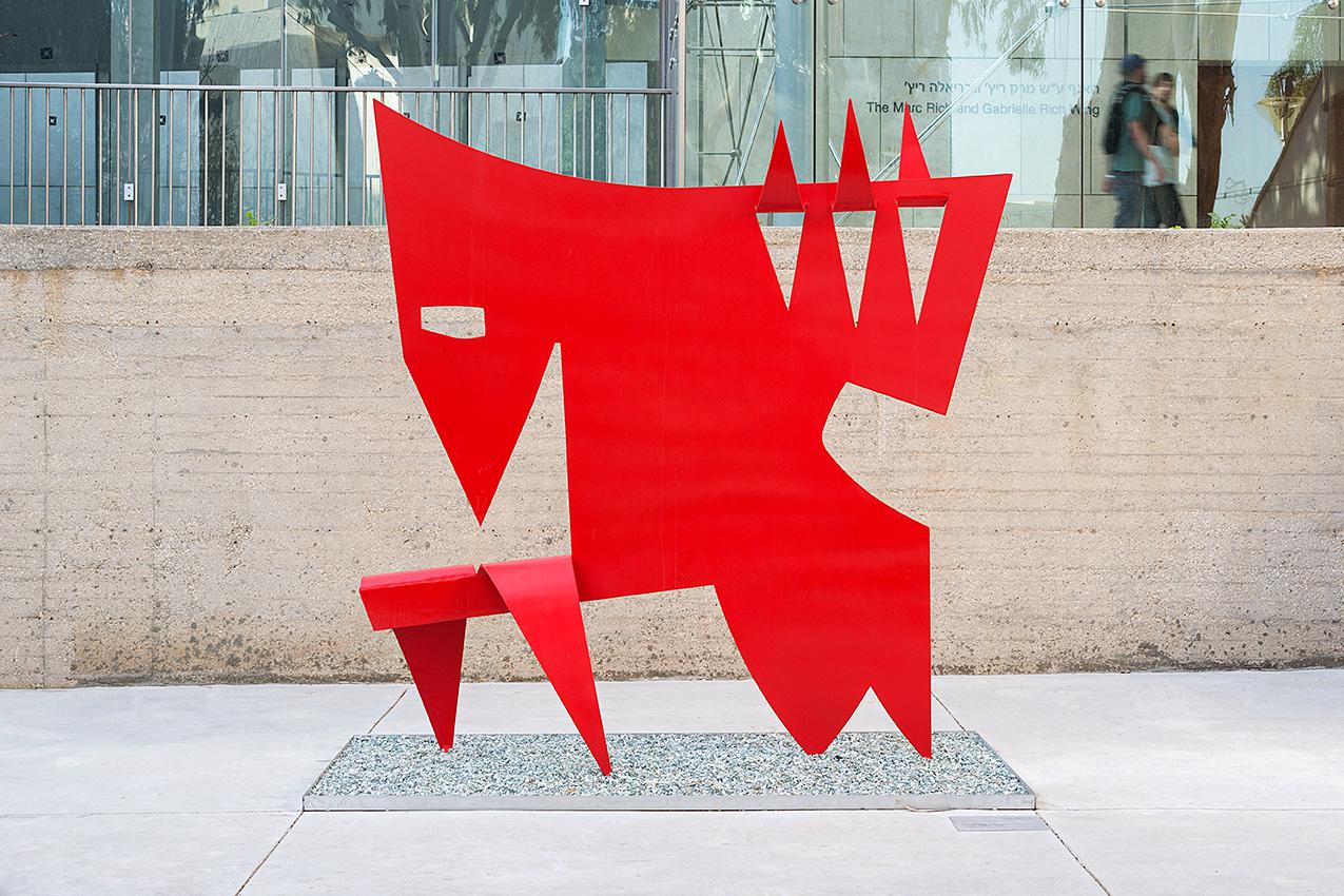 The Lola Beer Ebner Sculpture Garden In Memory of Dolfi Ebner, links the Museum's Main Building with the Herta and Paul Amir Building, and features milestones of Israeli as well as international modern and contemporary sculpture.