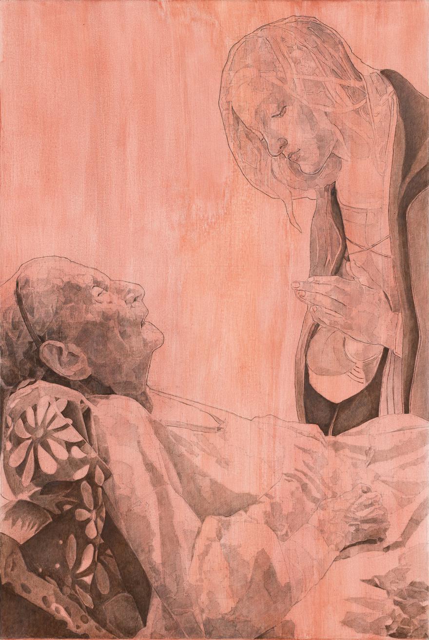 Pencil and acrylic on canvas mounted on wood, 65.1×96.6 cm