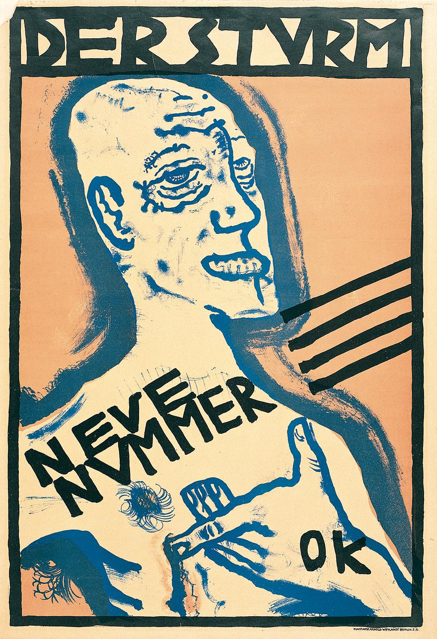 אוסקר קוקושקה, דיוקן עצמי (כרזה ל"דר־שטורם"), 1910