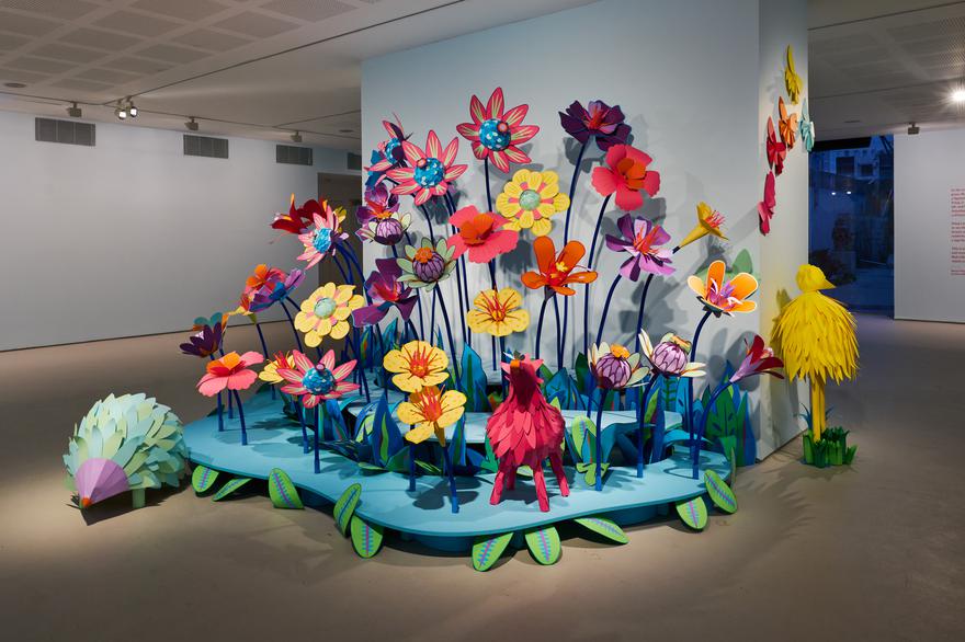 זו הזמנה פתוחה להשתתף בתערוכה וליצור יופי במו ידיכם. ברחבה מחוץ לגלריה תמצאו ניירות צבעוניים ליצירת פרפר או ציפור משלכם, שתוכלו להוסיף לקירות התכולים שמסביב למיצב.