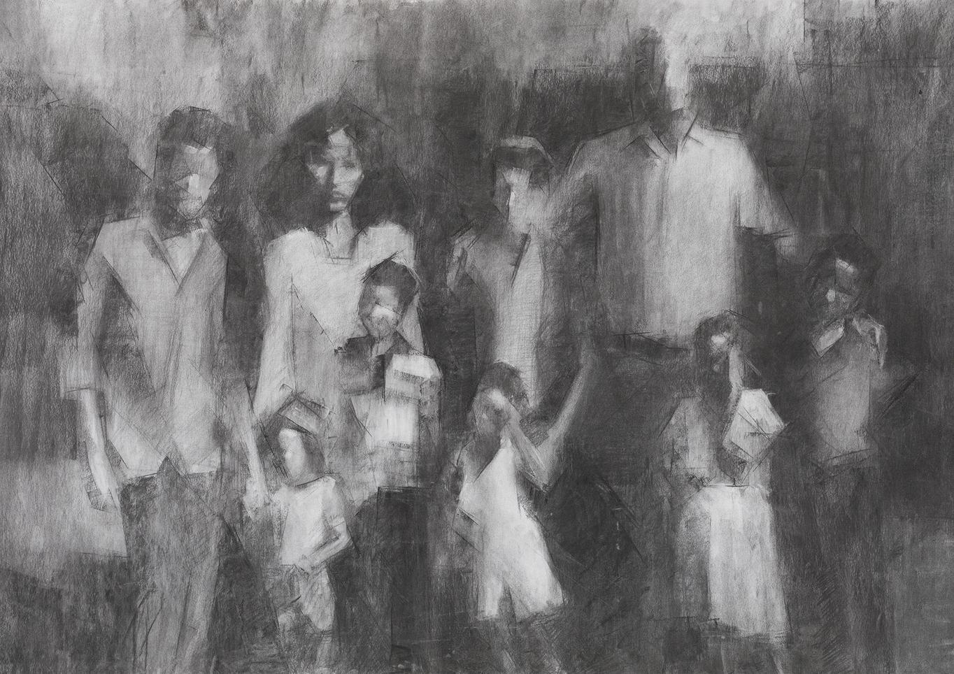 טגיסט יוסף רון מציגה רישומי פחם עזי מבע ורגש, המתארים דיוקנאות, פעולות, ורשמים ממרכז הקליטה בעתלית, שם שהתה עם משפחתה לאחר שעלתה לארץ ב"מבצע משה", ב־1984 . יוסף רון עוסקת בשאלות של זהות והגדרה עצמית דרך בחינת יחסיה עם אמהּ, שנפטרה בהיותה בת שש־עשרה, ועל רקע משבר ההגירה מאתיופיה לישראל. העיסוק בקשיי הקליטה ובמחיר שתובעת ההשתלבות בחברה חדשה מאיר גם את הסטריאוטיפים המאפיינים את היחס החברתי לזר ולשונה.